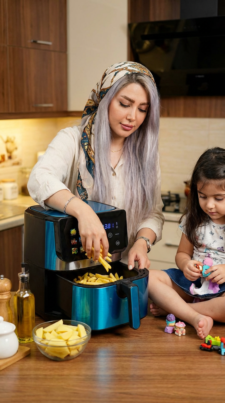 گنجایش ۱۰ لیتر واقعی این دستگاه از بسیاری از مدلهای ۱۳ لیتری بازار بزرگتر است و یک مرغ کامل بزرگ بهراحتی داخل آن جا میشود. این سرخکن با ۱۲ برنامه پخت پیشفرض، برای طبخ انواع گوشت قرمز، مرغ، ماهی (شکمپر و سوخاری)، تخممرغ، بخارپز، میوه خشککنی و حتی یخزدایی، مناسب است؛ آنهم بدون نیاز به حتی یک قطره روغن. امکان تنظیم دلخواه دما و زمان و ضمانت برقی ۲ ساله بیقید و شرط، این محصول را به انتخابی مطمئن برای آشپزخانه تبدیل میکند.
