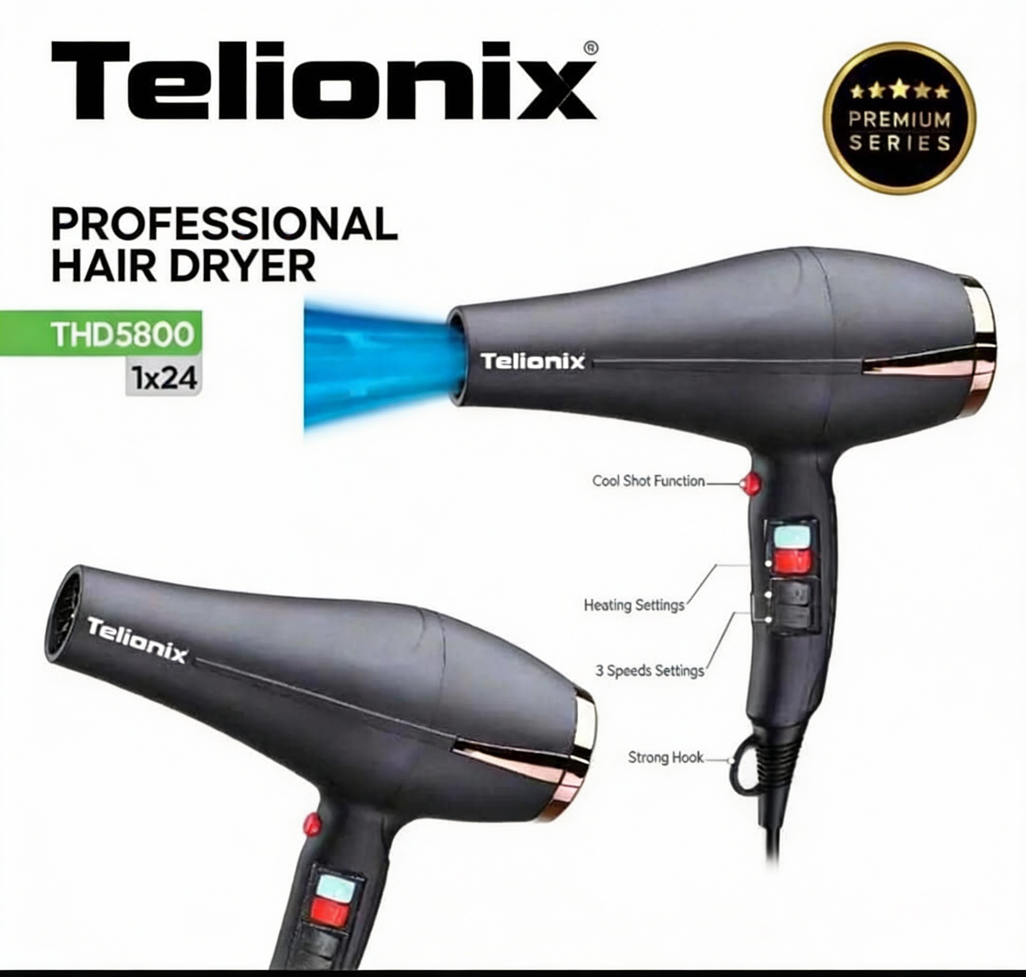 سشوار موتور سنگین تلیونیکس با سطح انرژی +A و کیفیت ساخت بالا، گزینهای مناسب برای استفاده روزمره و همچنین کارهای سنگین و آرایشگاهی است. المنت آلومینیومی این سشوار کمک میکند تا پس از خشککردن، موها ظاهری لطیف و ابریشمی داشته باشند. این دستگاه دارای درجه باد سرد و گرم بوده و به همراه یک متمرکزکننده باد ارائه میشود تا بتوانید با دقت بیشتری موهای خود را حالت دهید. طول سیم ۲ متر و وجود حلقه آویز، استفاده در محیطهای حرفهای را آسانتر میکند. بدنه استیل بسیار مقاوم آن، سشوار را در برابر گرما و ضربه از استحکام بالایی برخوردار کرده است. این محصول دارای ضمانت است.